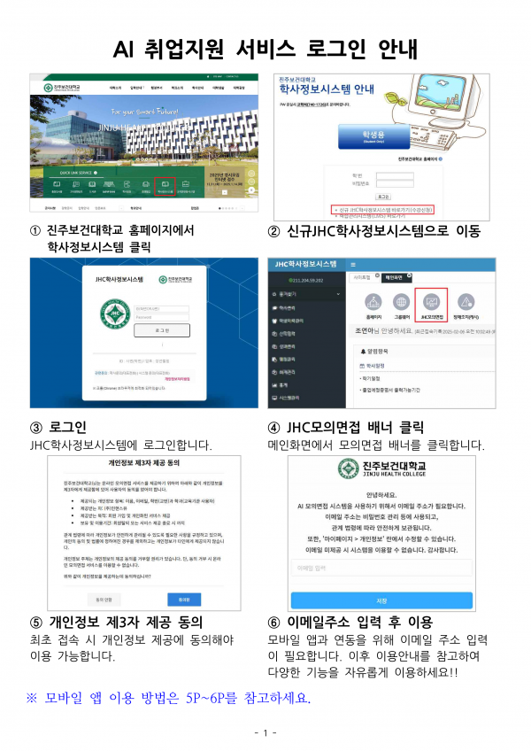 - AI 모의면접 시스템의 자세한 매뉴얼은 첨부파일을 참고하여 주시기 바랍니다.